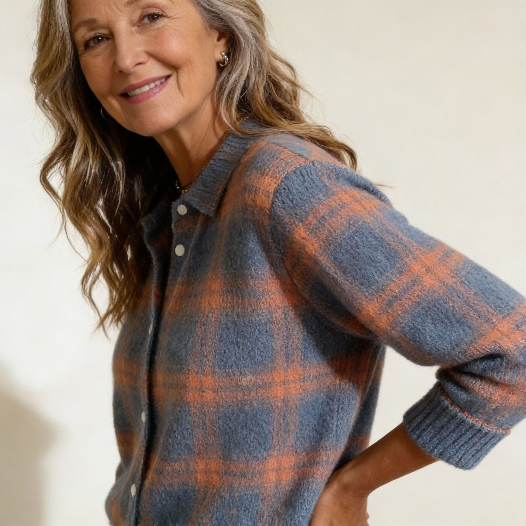 Wrap yourself in the cozy embrace of timeless elegance with our plaid cardigan, where comfort meets classic American style. Experience the perfect blend of warmth and sophistication that elevates your everyday look.