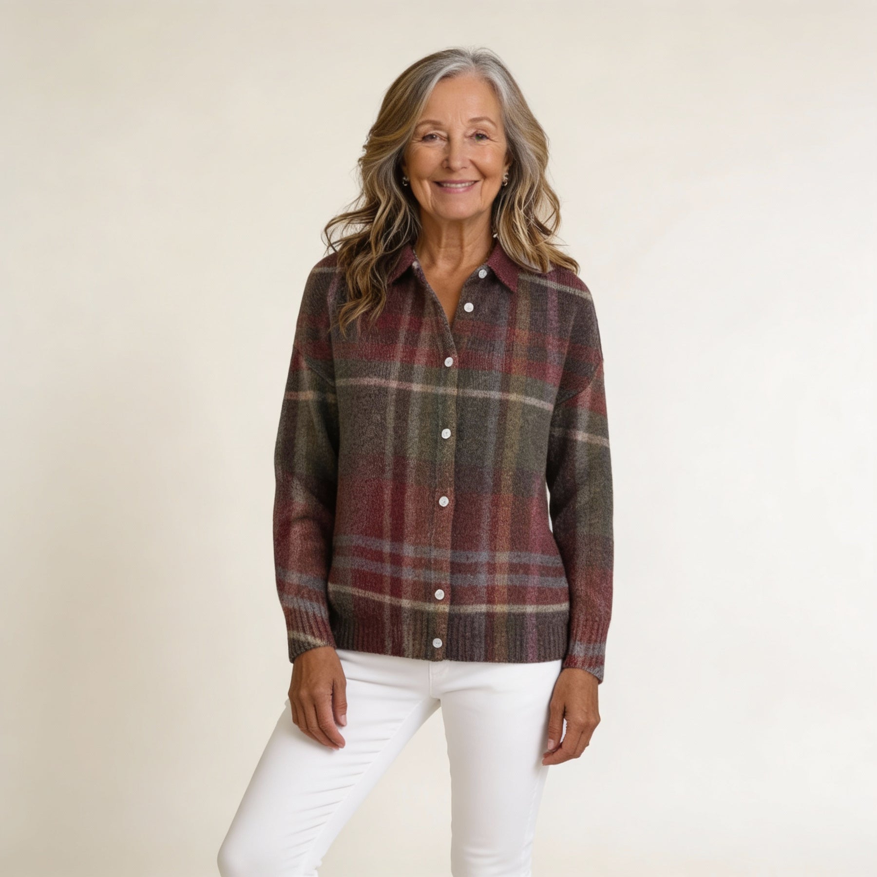 Wrap yourself in the cozy embrace of this plaid cardigan, where timeless style meets unparalleled comfort. Perfect for the modern lifestyle, it effortlessly elevates any ensemble with its elegant charm.