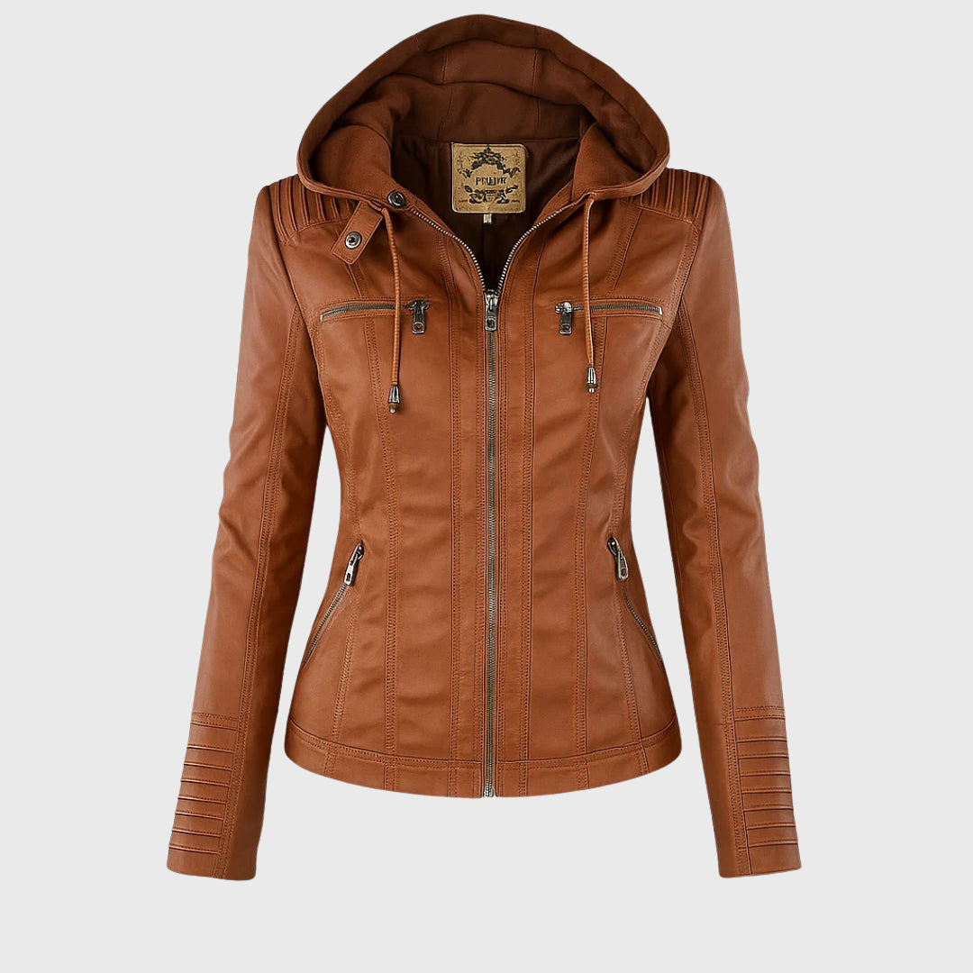 This women's jacket combines modernity and elegance in a fitted design that highlights the silhouette. With a removable hood and front zipper, it offers practicality without sacrificing style. The details on the shoulders and sleeves add individuality and a modern touch, making it a perfect choice for impressive looks both during the day and in the evening.
